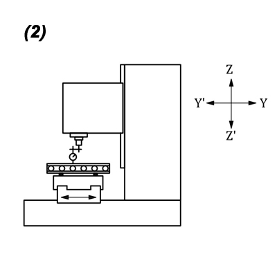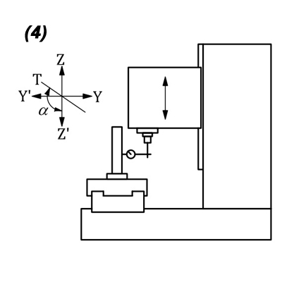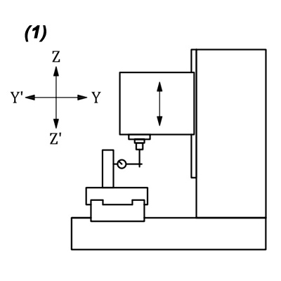 and other checking points in accordance to ISO 10791-2 & JIS B 6336-2 for Geometric test standards for CNC machines and Coordinate Measurement equipment comprising a vertical spindle shaft (vertical Z-axis) with respect to the surface plan of work-table.